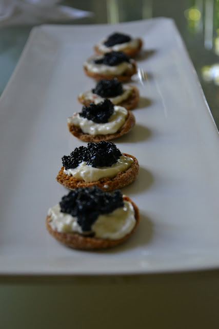 | Alkupaloiksi äyriäistahnalla ja kaviaarilla täytettyjä palttoonappeja... |